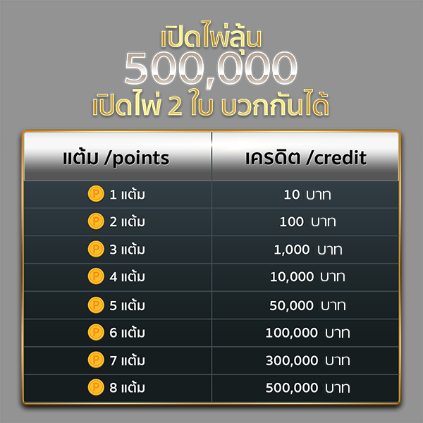 ยอดฝากครั้งแรก 500 บาท เปิดไพ่ฟรี 2 ครั้ง